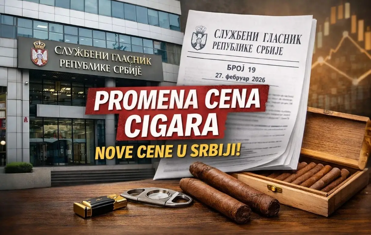 U skladu sa objavom u Službeni glasnik Republike Srbije, broj 19 od 27. februara 2026. godine, objavljena je promena maloprodajnih cena tompusa (cigara) i pojedinih duvanskih proizvoda na teritoriji Republike Srbije.